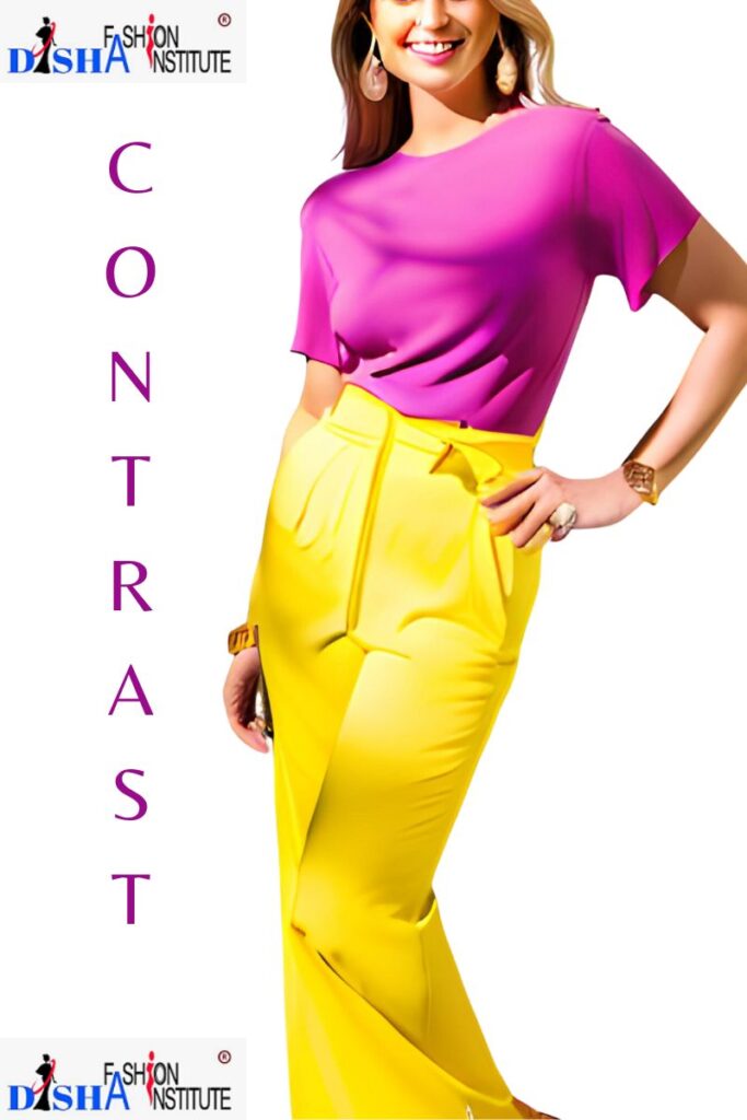 - Contrast adds visual interest and excitement to a design, making the outfit more eye-catching, appealing and captivating.