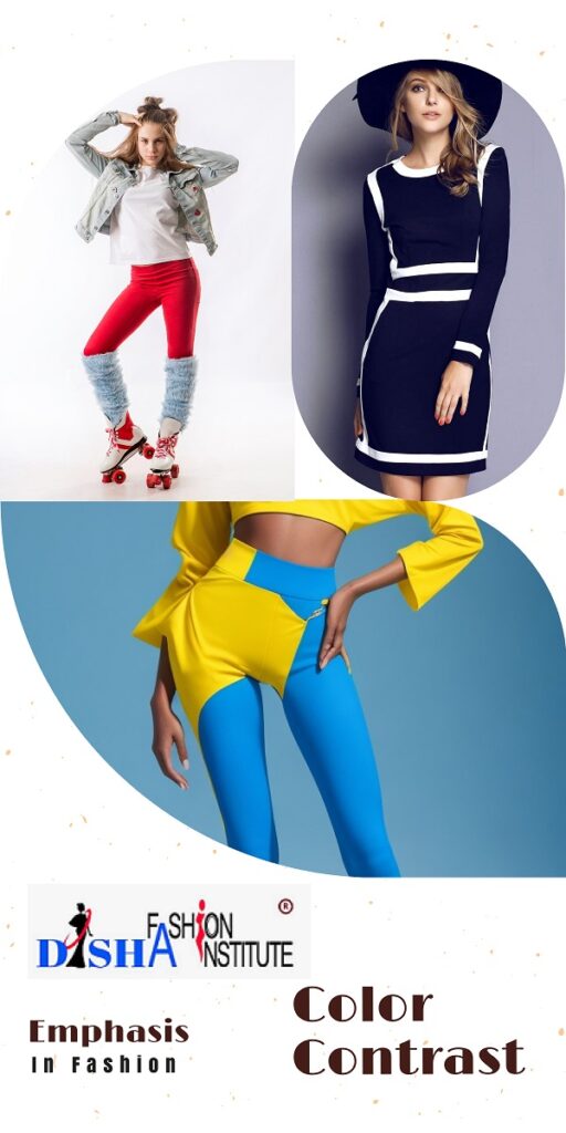 Contrast refers to the use of opposing elements to create visual interest and impact in a garment. Following are the ways by which contrast can be used to successfully achieve emphasis in dress.