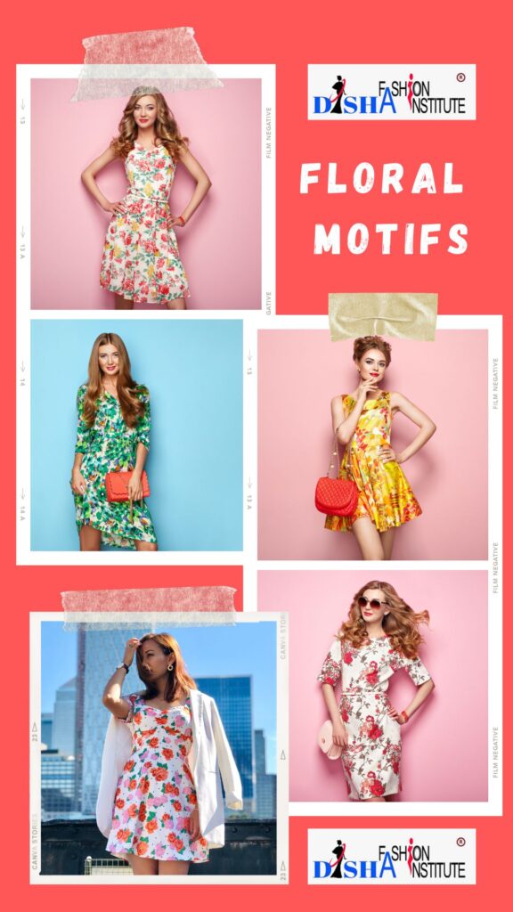 Repetition of floral motifs in various sizes and colours on a garment imparts a feminine, romantic, and cute feel to the design. In this case, a repetitive traditional motif is also alluring.